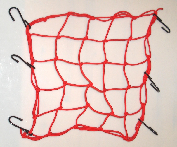 Сетка (паук) для крепления и перевозки пассажирского шлема, или любых других грузов на мотоцикле. Изготовлена из эластичных растягивающихся жгутов. Оснащена шестью крепёжными крюками для фиксации. Крючки изготовлены из металла и покрыты виниловой оболочкой. Цвет сетки зелёный.