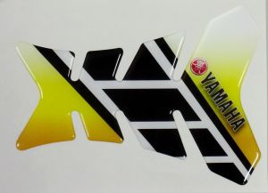 IXS Наклейка на бензобак чёрно-жёлтая для мотоциклов YAMAHA. Ширина 130 мм, длина 175 мм по крайним точкам.