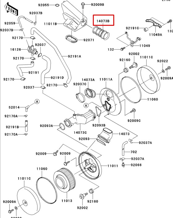 Подробное описание KAWASAKI Патрубок фильтрбокса 14073-1660 VN1500
