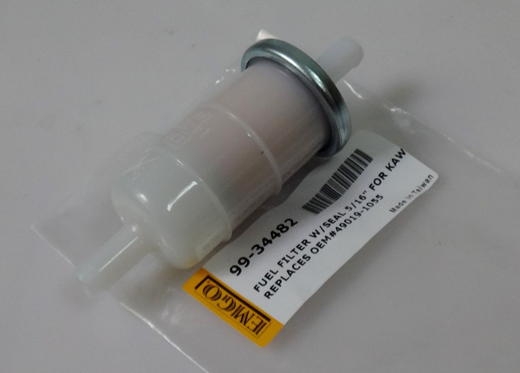 EMGO Топливный фильтр. Длина без учёта штуцеров 58 мм. Наружный диаметр штуцеров 8 мм. Необслуживаемый. Может быть использован вместо KAWASAKI 49019-1055 (490191055), YAMAHA 1FK-24560-10-00 (1FK245601000),1FK-24560-00-00 (1FK245600000).