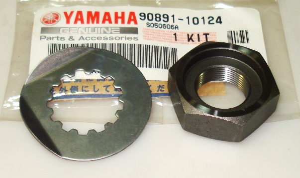 YAMAHA 90891-10124-00 (908911012400) Оригинальный комплект состоящий из гайки и шайбы передней (ведущей) звезды.