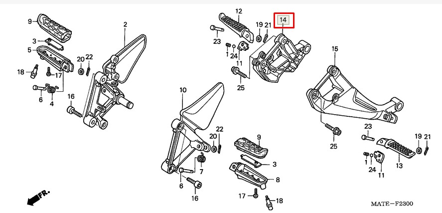 HONDA Кронштейн левой пассажирской подножки XRV750 50811-MY1-000 (50811MY1000)