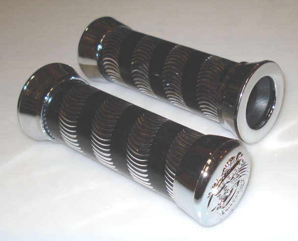Черные ручки с хромированными наконечниками. Для руля 7/8 дюйма (22мм). Длина 125мм.